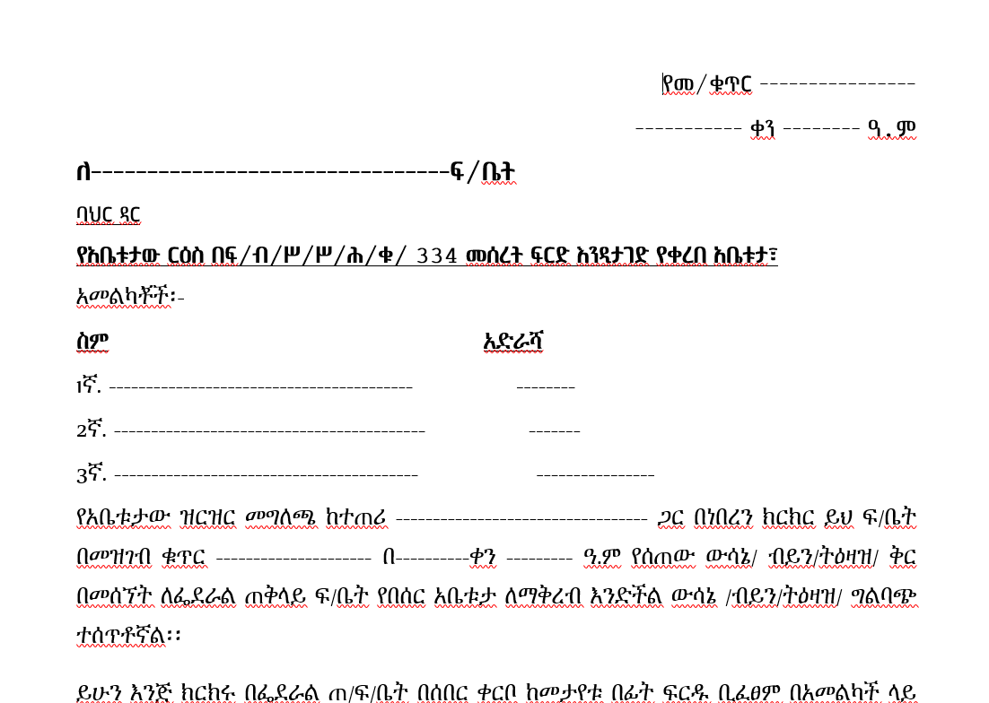 የ15 ቀን አፈጻጸም እግድ መጠየቂያ