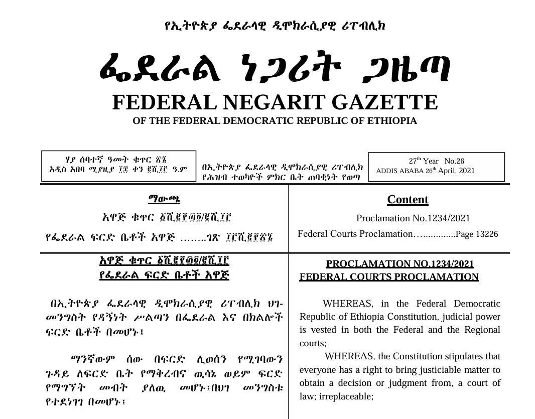 አዋጅ ቁጥር ፩ሺ፪፻፴፬/፪ሺ፲፫ የፌደራል ቤቶች አዋጅ
