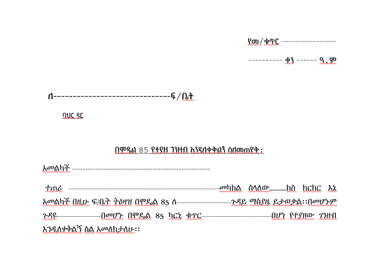 በሞዴል 85 የተያዘ ገንዘብ መጠየቂያ