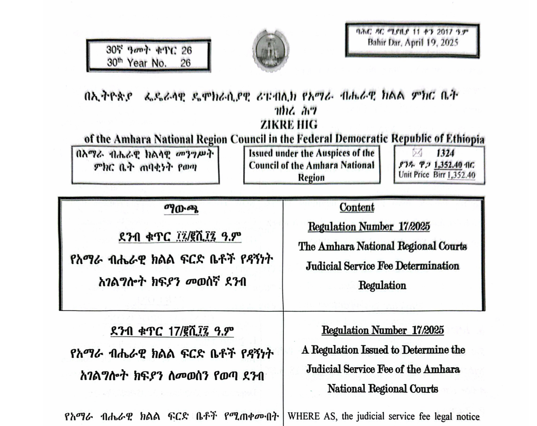 የአማራ ብሔራዊ ክልል ፍርድ ቤቶች የዳኝነት አገልግሎት መወሰኛ ደንብ